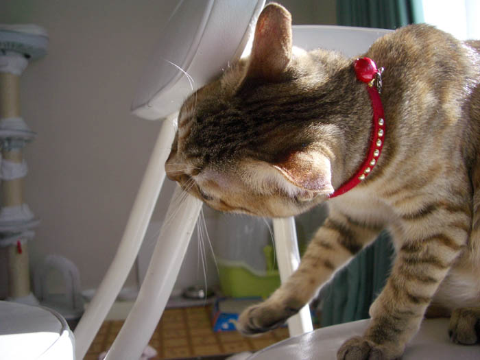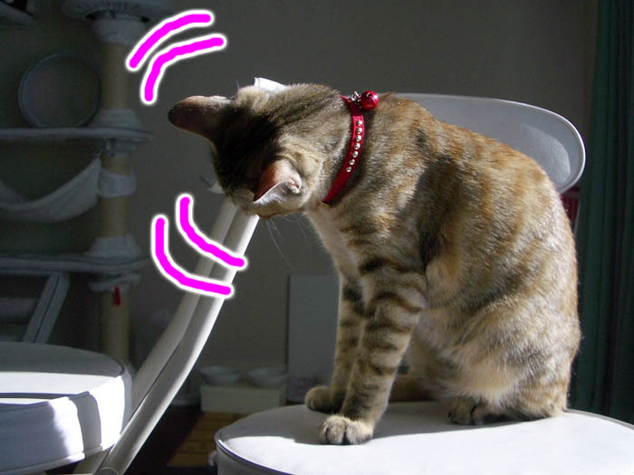 座椅子の後に移動させたメディカル枕を占領中。