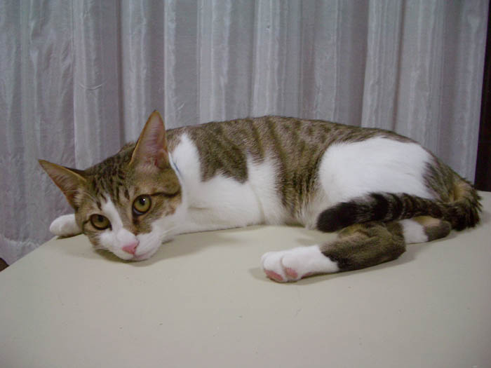 体を落としてぺったりと伏せていまいました。