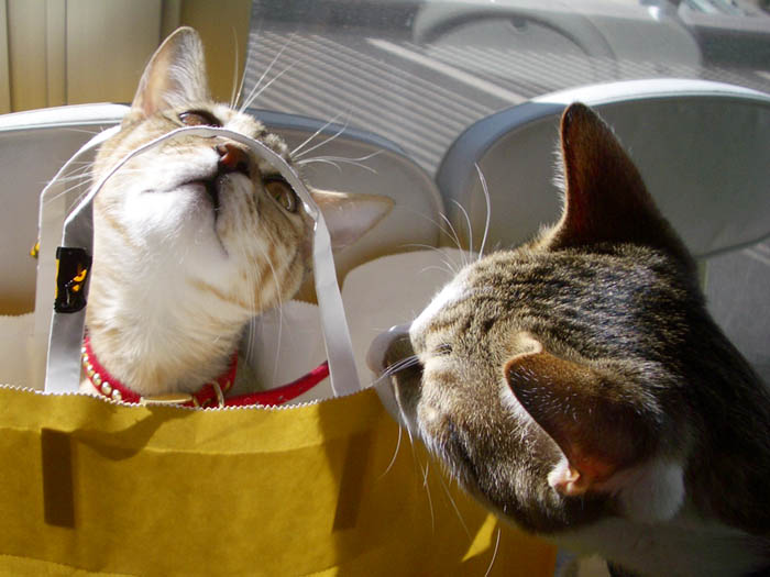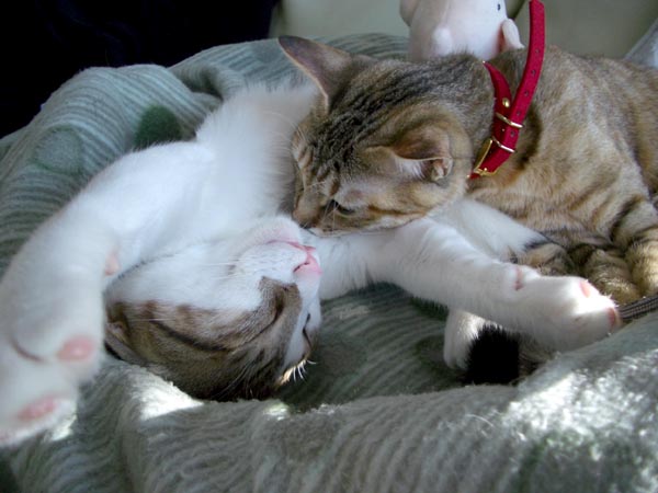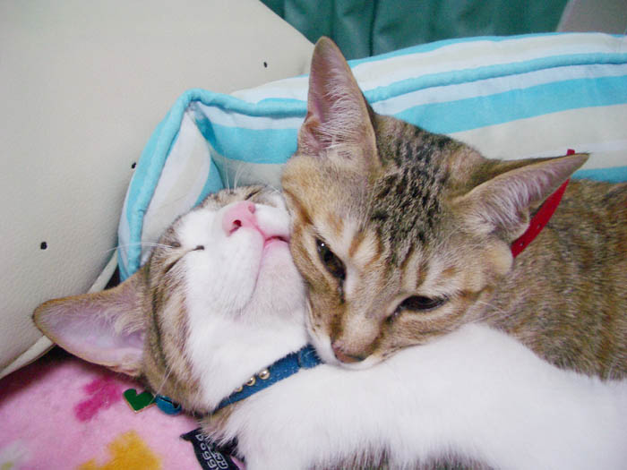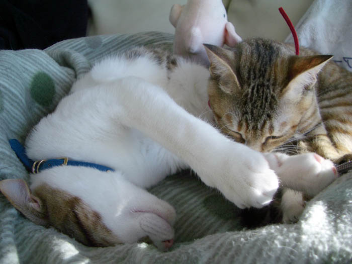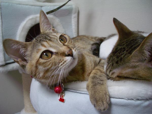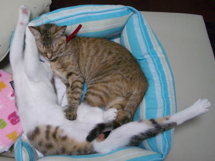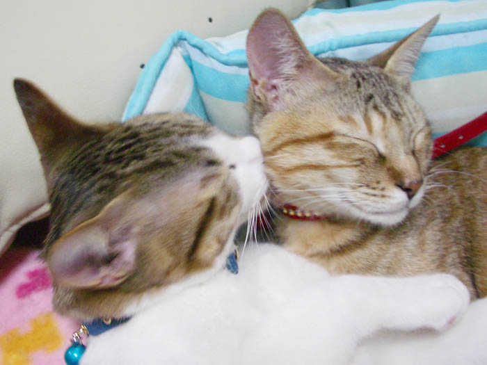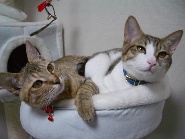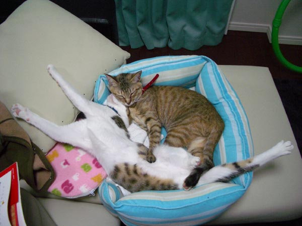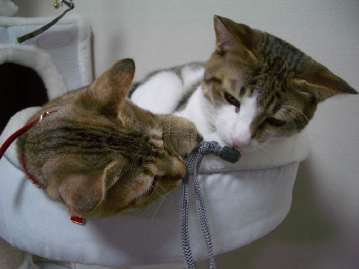 猫ベッドで仲良くお昼寝していた2匹ですが、