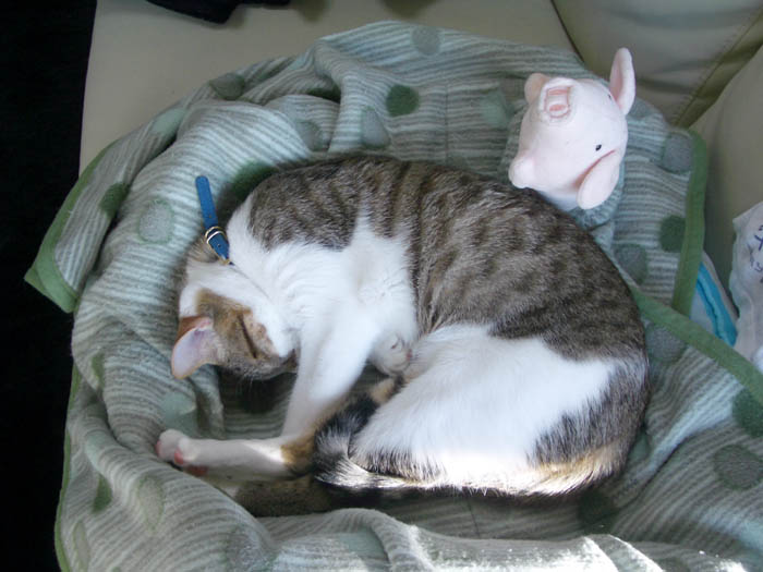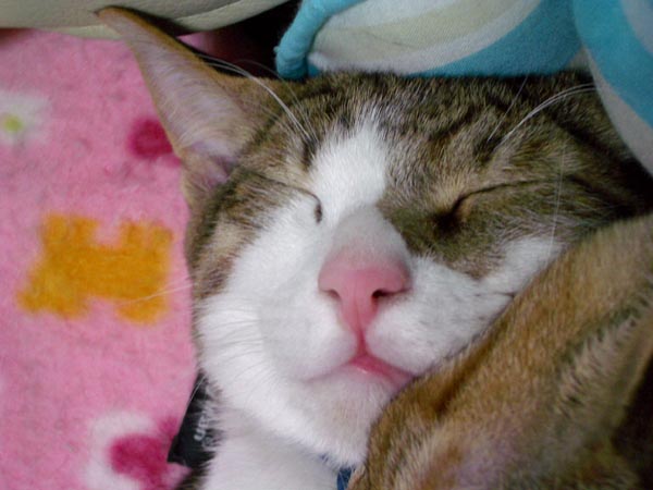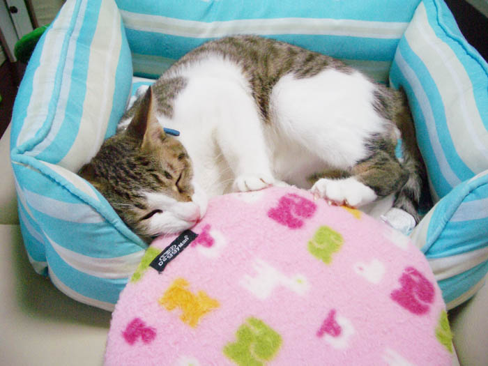 猫ベッドの中でのんびりお昼寝タイムです。