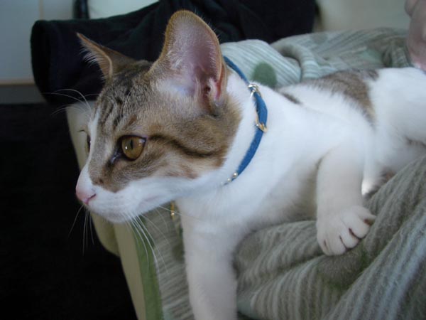 ぽっけ♂の首元に見事ヒットです。