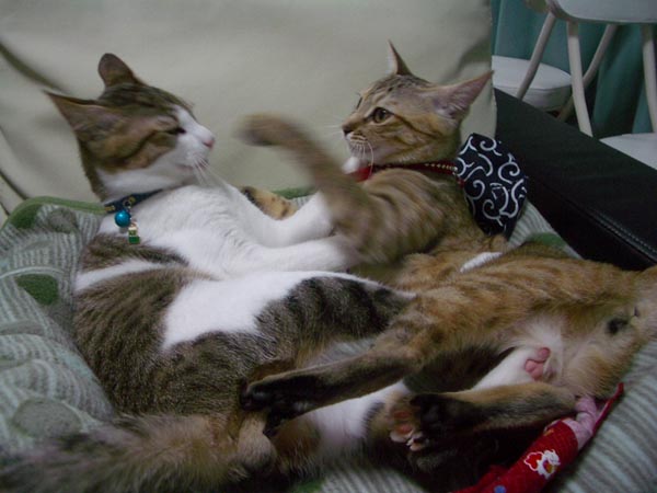 まずは、ぴっち♀の先制猫パンチ