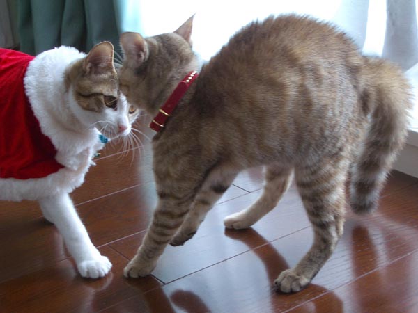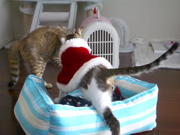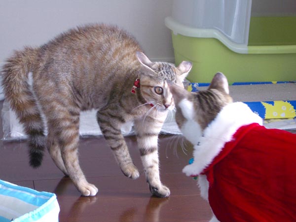 予想通り2匹に嫌がられましたが、