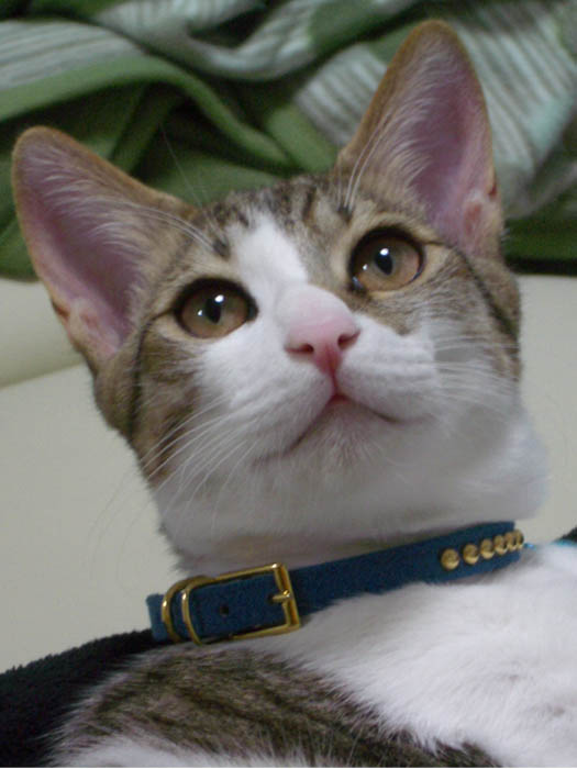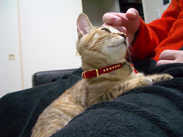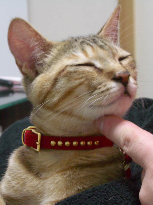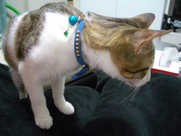 上から下げている首輪にちょーい、ちょい。
