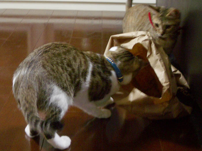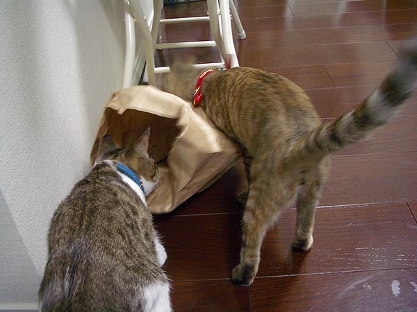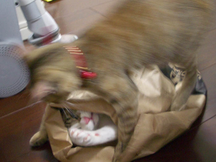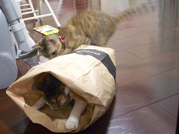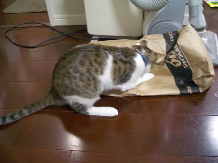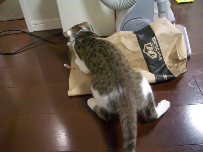 紙袋の中目掛けて突入し、