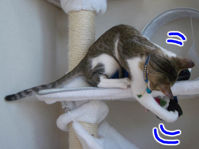 猫タワーから下りてしまいました。