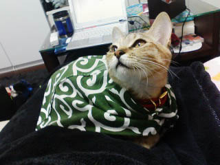 猫ベッドにかけてみました。