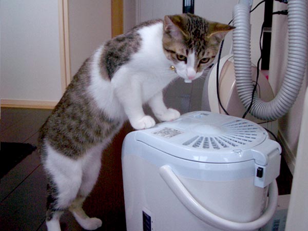 ローラー部分に猫パンチ