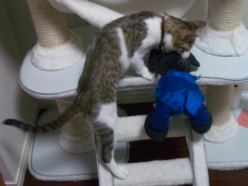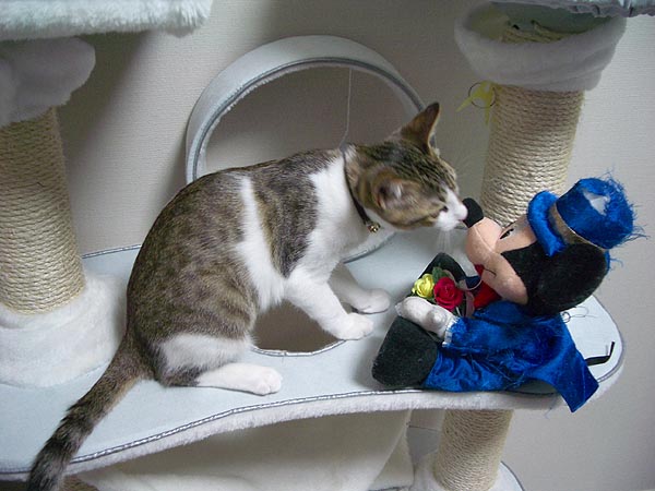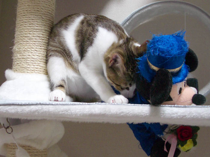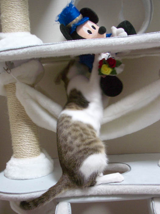 猫タワーにいるミッキーに噛み付き、