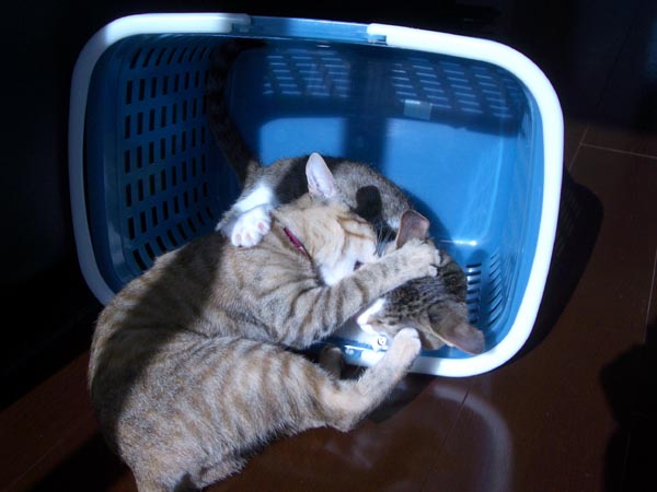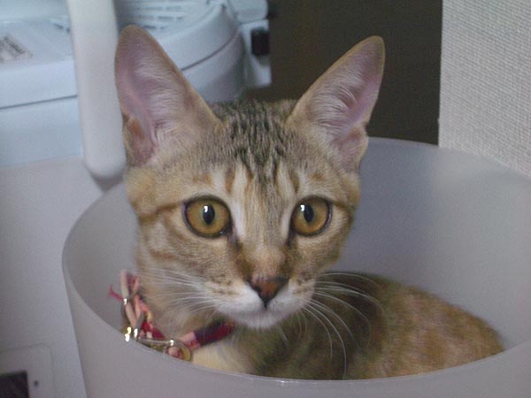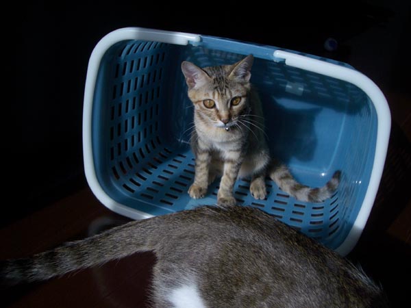 カゴを置いておくと、すぐ入ってしまうぴっち♀。