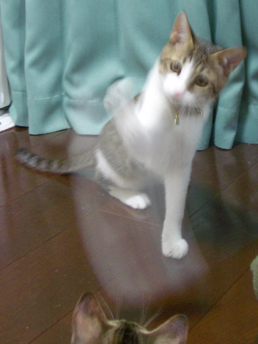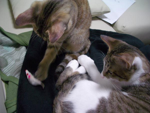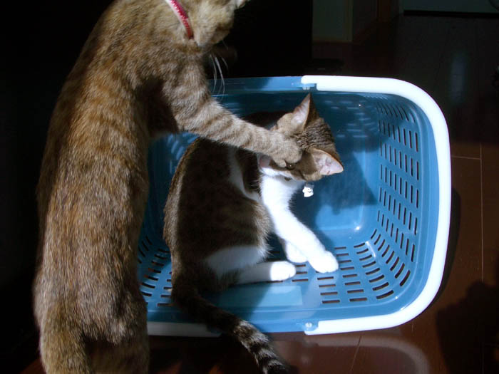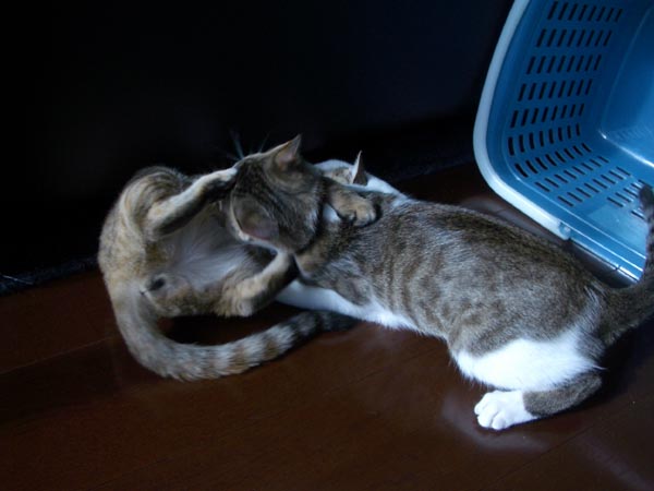 まずはぽっけ♂が素早い猫パンチ