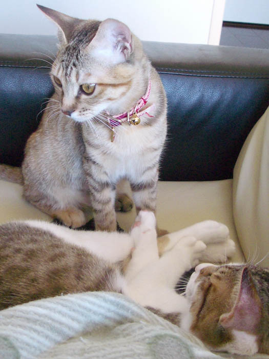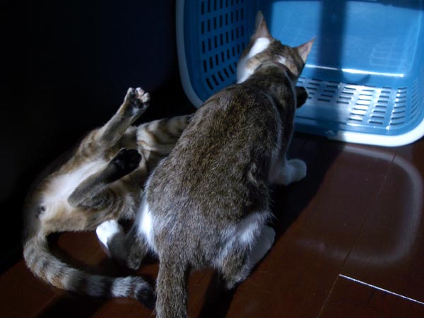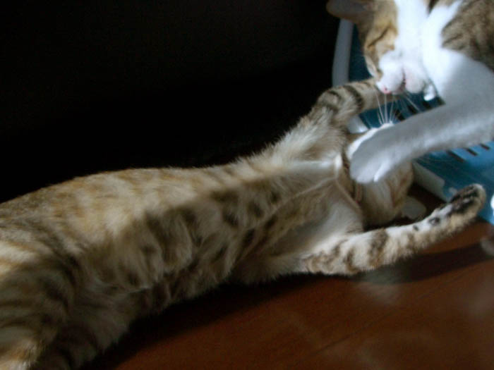 を繰り出していました。猫タワーから下り、