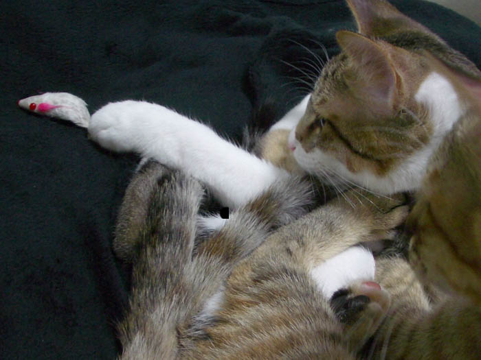 ネズミにフンフンしたり、齧りついたり。 再び遊びたいスイッチが入ったのか、
