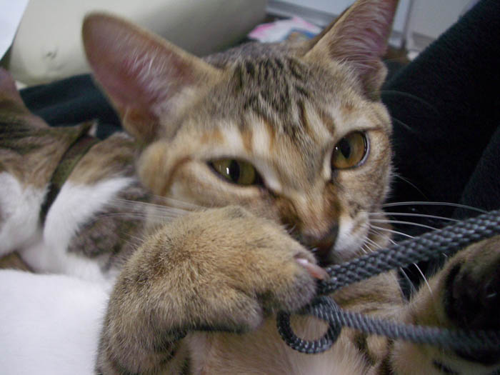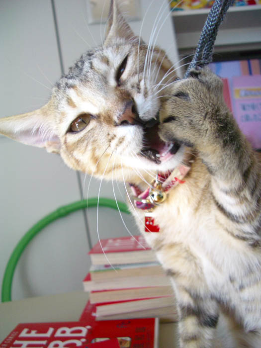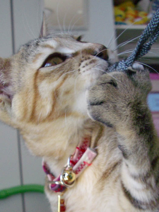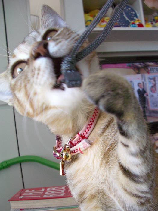 デジカメのストラップにもじゃれてきました。