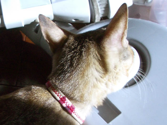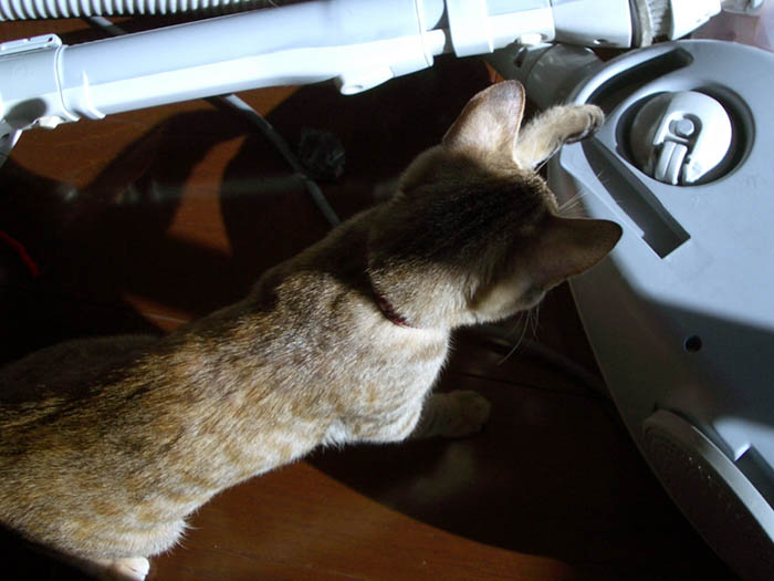 」ローラー(エモノ)に鼻先を近づけてフンフン。