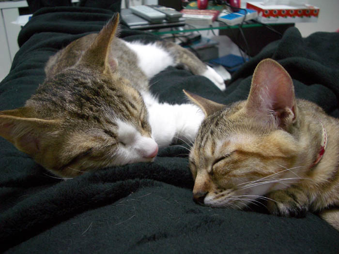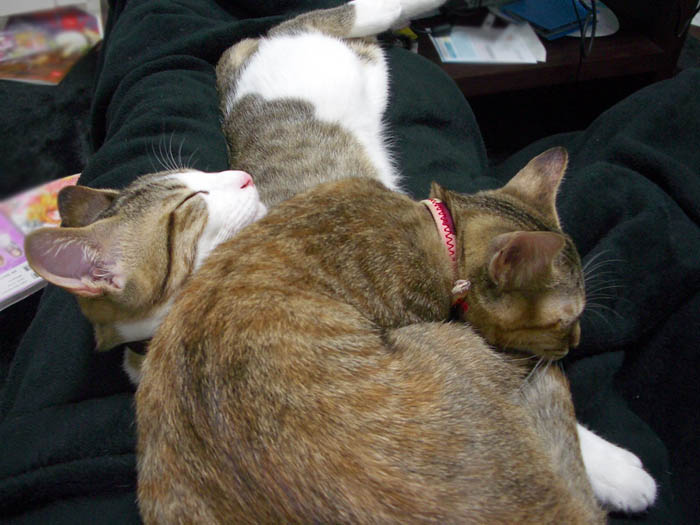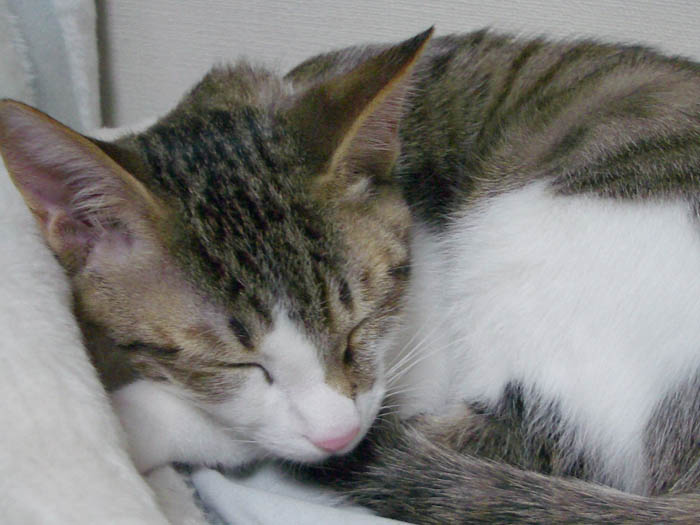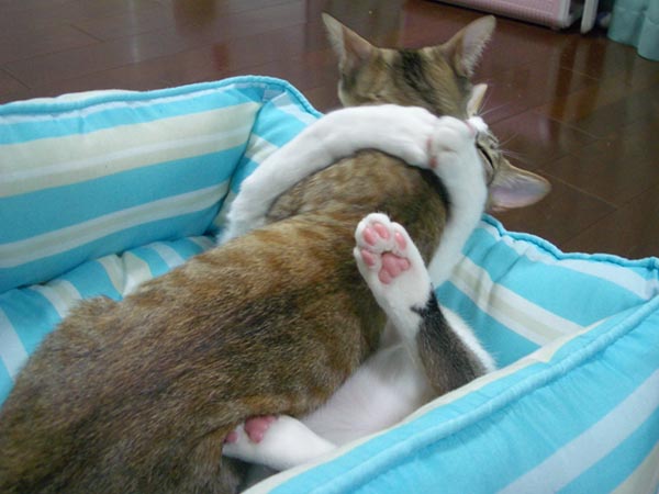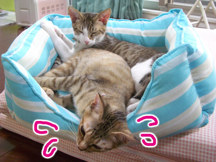しかも、ちゃっかりお尻を枕にしています(笑)。