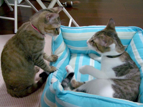 今日は2匹がそれぞれ飛び掛ってきた瞬間がありました。