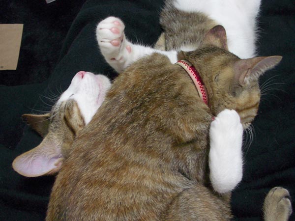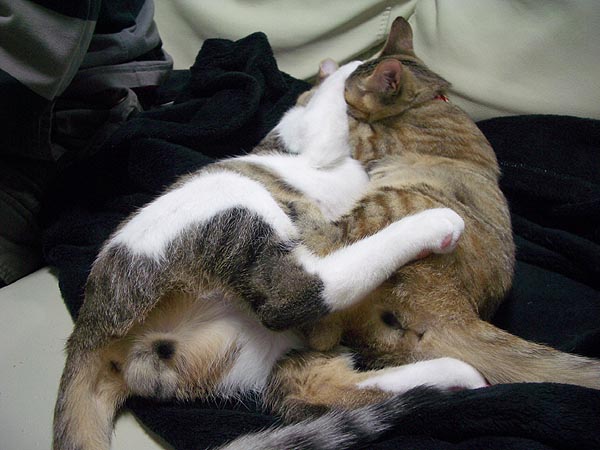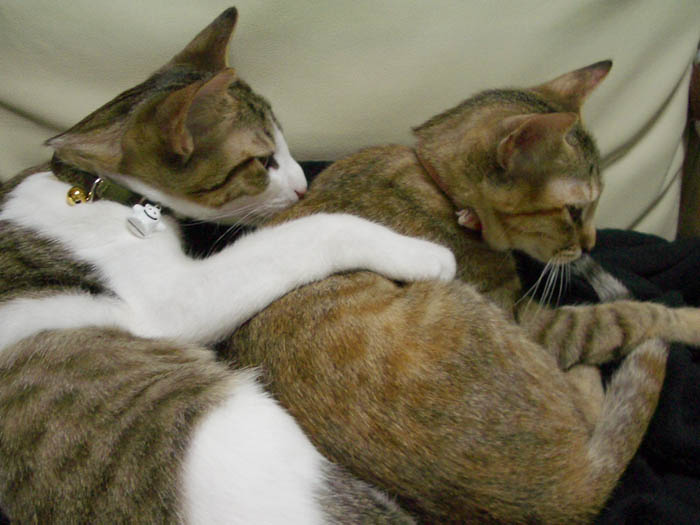 ぽっけ♂の後足と、ぴっち♀の前足が重なり、
