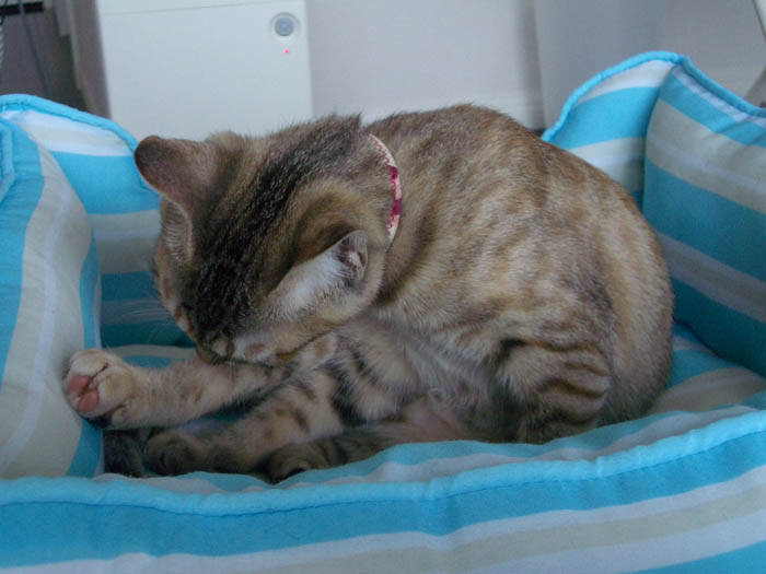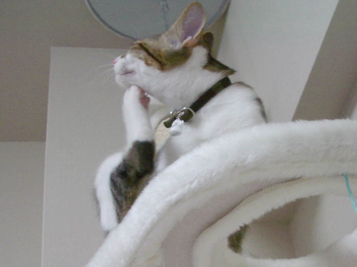 目を覚ましたぴっち♀が、毛づくろいを始めました。