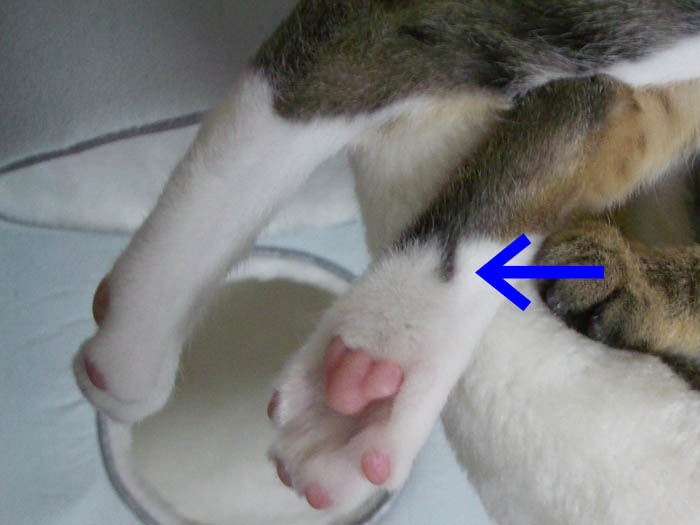 ちょっぴり開き気味のぽっけ♂の後足をアップで。