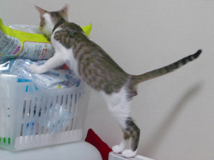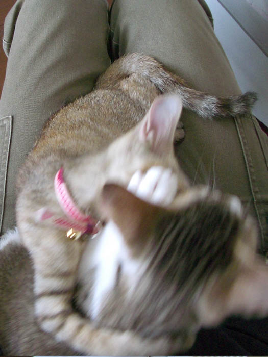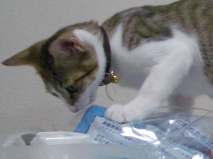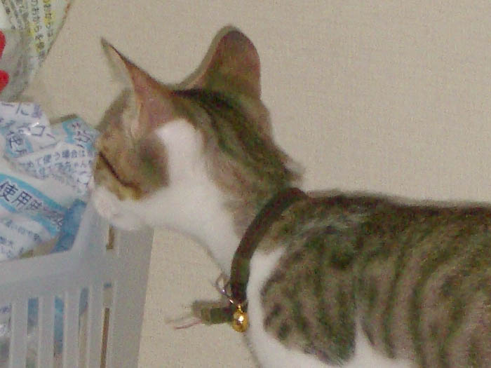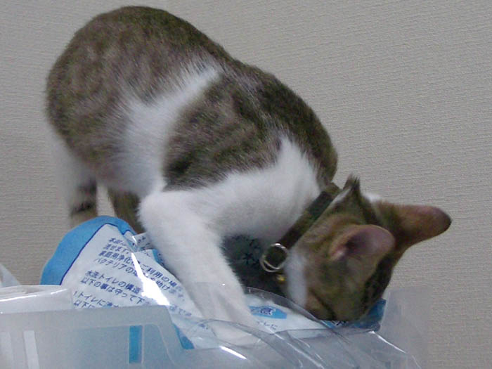 の膝の上に袋を下ろすと、中に入ったまま落ち着いてしまいました。