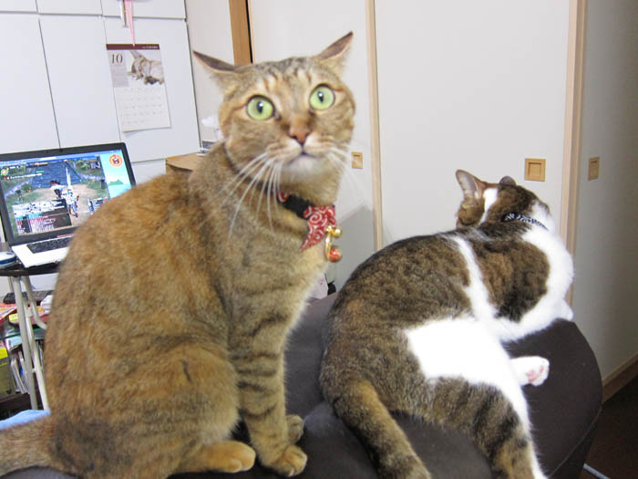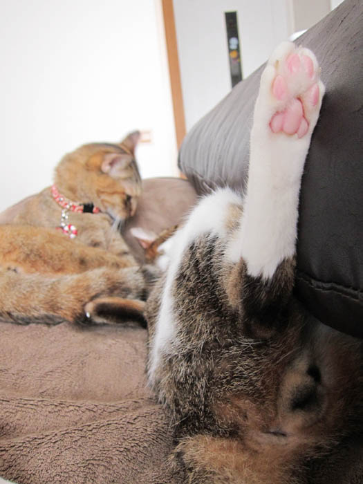 2012年 9/1(土) 1477日目のぴっち♀とぽっけ♂ ~前払い~休日の外出の際は、自宅警備猫に業務委託をしますが、報酬は前払いです。
