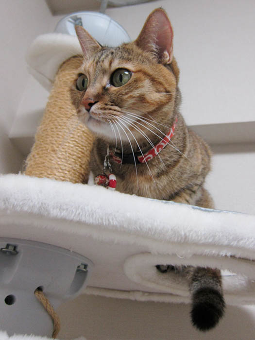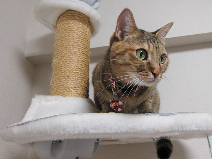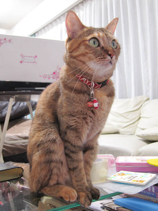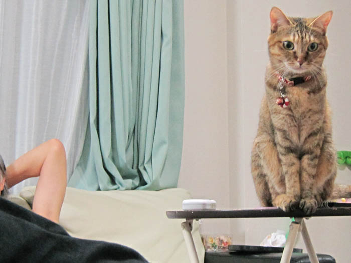 ミニテーブルの上に乗ってみたものの……。