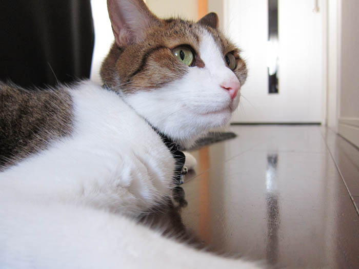 ぽっけ♂が床の上に寝そべって、