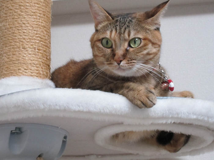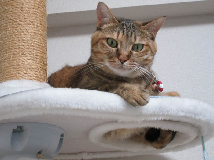 猫タワーへ逃げて行きました。