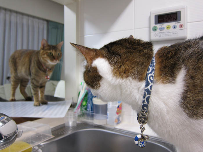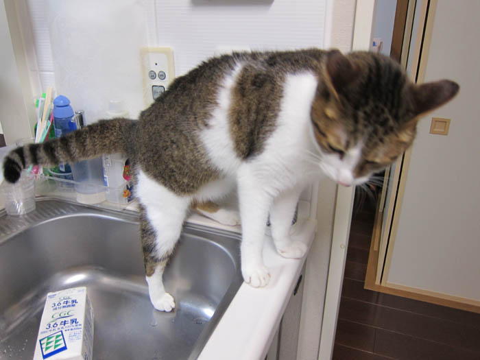 ぴっち♀がキッチンのカウンターから