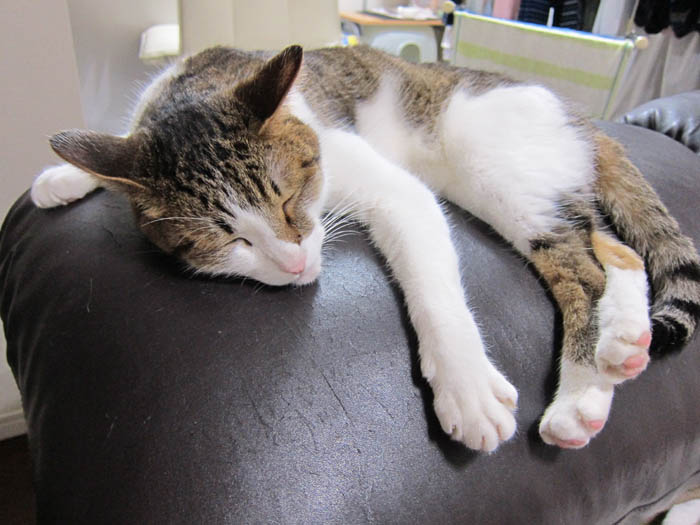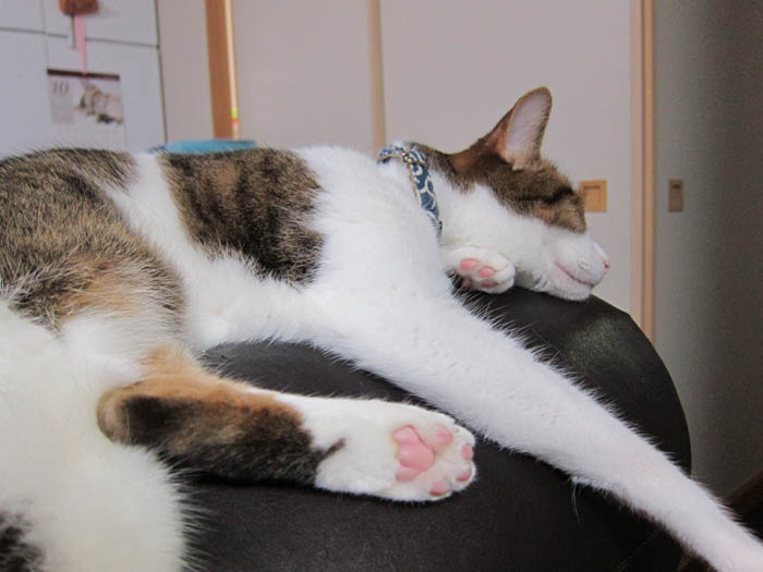 眠れる獅子……もとい猫を起さないで欲しい夕方の時間。