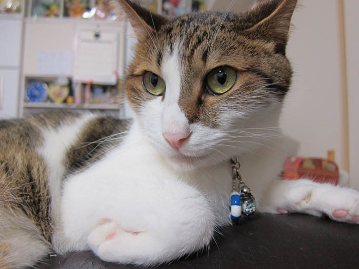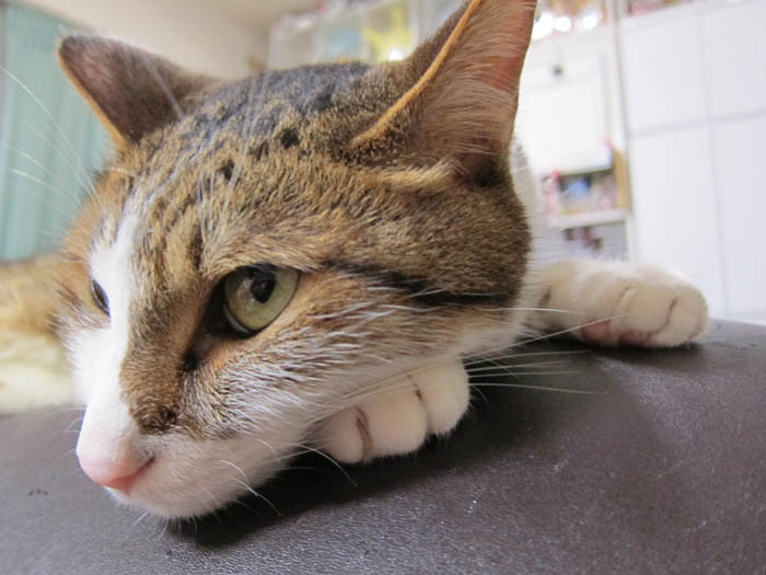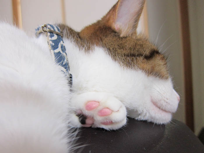 2012年 8/2(木) 1447日目のぴっち♀とぽっけ♂ ~セルフ腕枕~今日のぽっけ♂の顎乗せ枕は、ふわふわで真っ白な……。