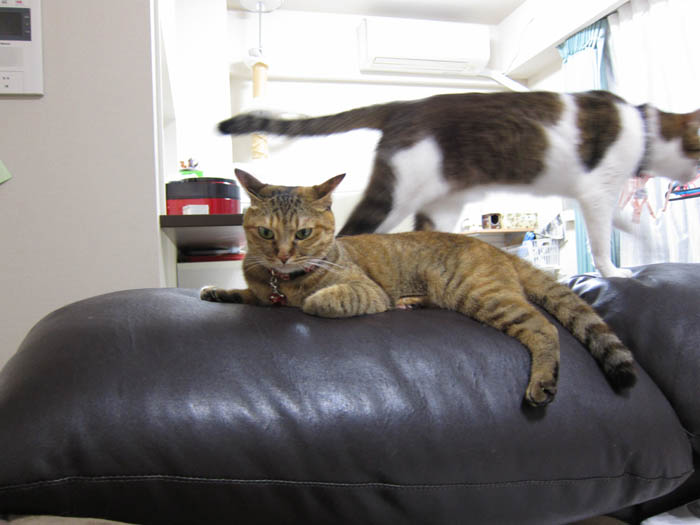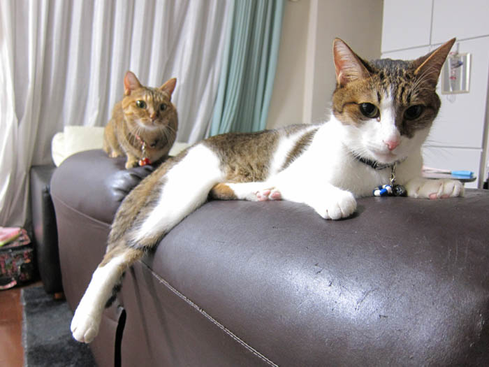 2011年 8/4(木) 1083日目のぴっち♀とぽっけ♂ ~フィットが大事~2匹がそれぞれ気に入っている椅子のポイントはきっと……。