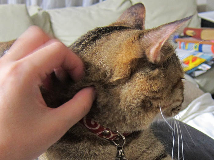 あたちをナデナデするのニャ~。」