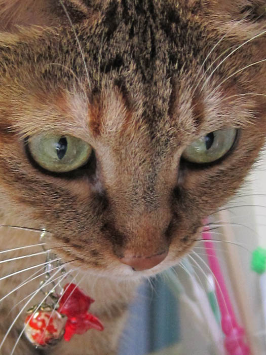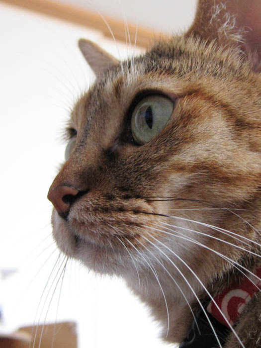 新規写真追加。窓際で佇むぽっけ♂が、網戸越しに獲物(虫)を見つけました。さあ、どうする
