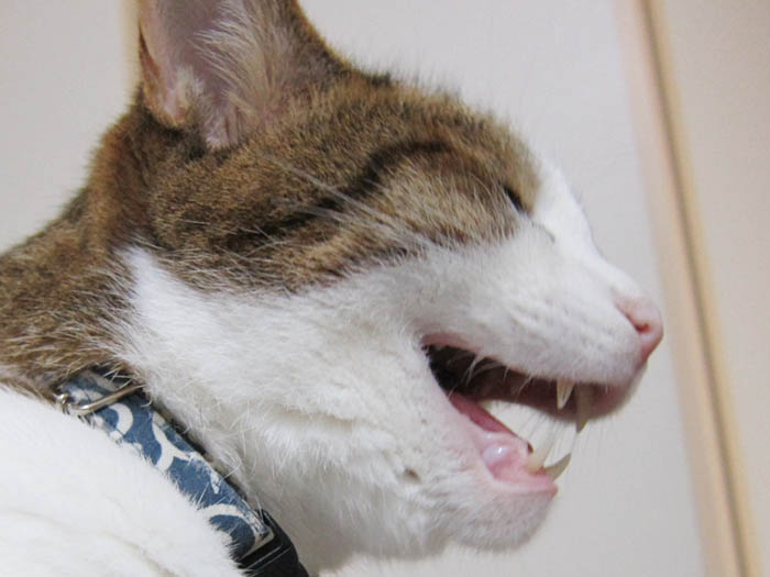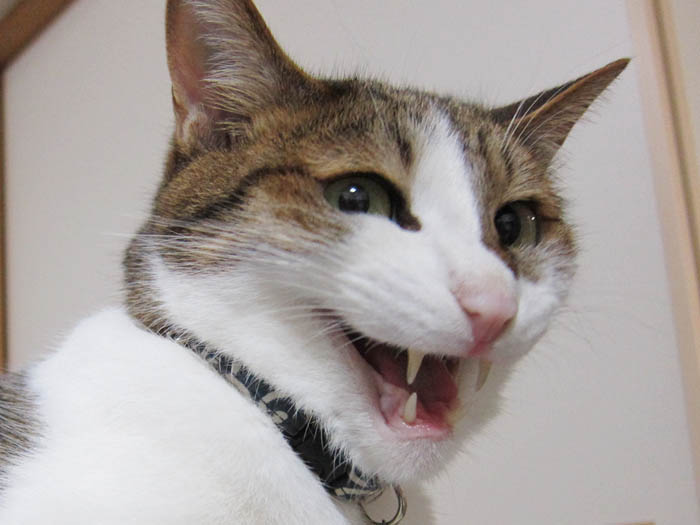 普段はツメも出さないぽっけ♂が、容赦なくキバを剥いてきます。そんな時は他のものを差し出して……。