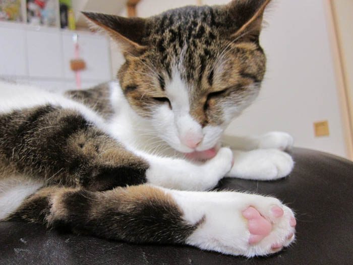 2012年 7/24(火) 1438日目のぴっち♀とぽっけ♂ ~夜のマッタリ時間~お腹枕を堪能したり、毛づくろいで素敵な毛割れになってみたり。