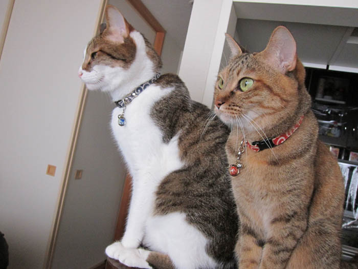 2012年 7/22(日) 1436日目のぴっち♀とぽっけ♂ ~凝視中~ソファーでお昼寝したり、2匹揃って網戸越しにエモノを凝視したり。