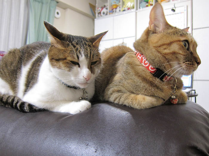 2011年 6/18(土) 1036日目のぴっち♀とぽっけ♂ ~関係の変化~3年近く経って、ついにぽっけ♂が……。猫同士の関係も色々変わっていくんだなぁとしみじみ。
