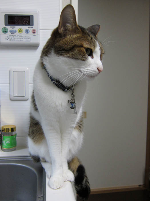 2009年 6/16(火) 304日目のぴっち♀とぽっけ♂ ~瞬間的成長~無法地帯になったカウンターから退かないぴっち♀。子猫なぽっけ♂とその成長