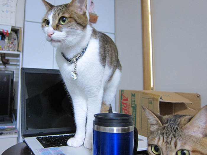 2012年 4/16(月) 1339日目のぴっち♀とぽっけ♂ ~ニャ(仁)王立ち~四角く丸くなったり、猫的仁王立ちしたり。