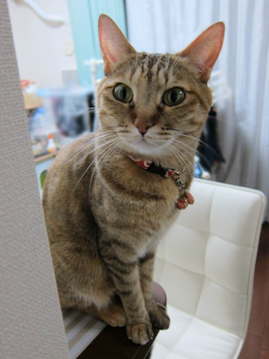 を見上げて、【夜寝る前のゴハン】のアピールをしています。