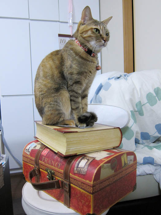 2012年 3/15(木) 1307日目のぴっち♀とぽっけ♂ ~猫のメゾネット2階建て~踏み台が猫のメゾネット2階建に大変身。日向ぼっこにもってこいのようです。