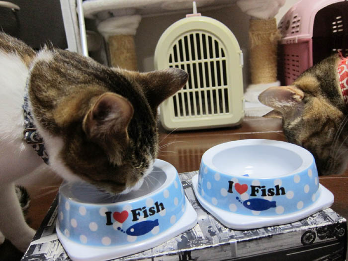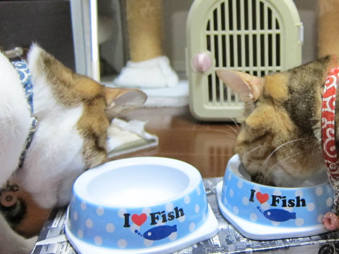 ゴハン皿の前から2匹が解散すると……。