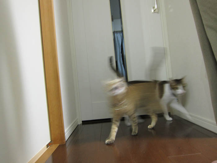 猫が廊下へと脱走していきます
