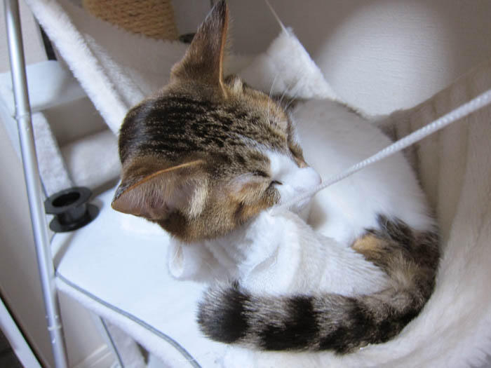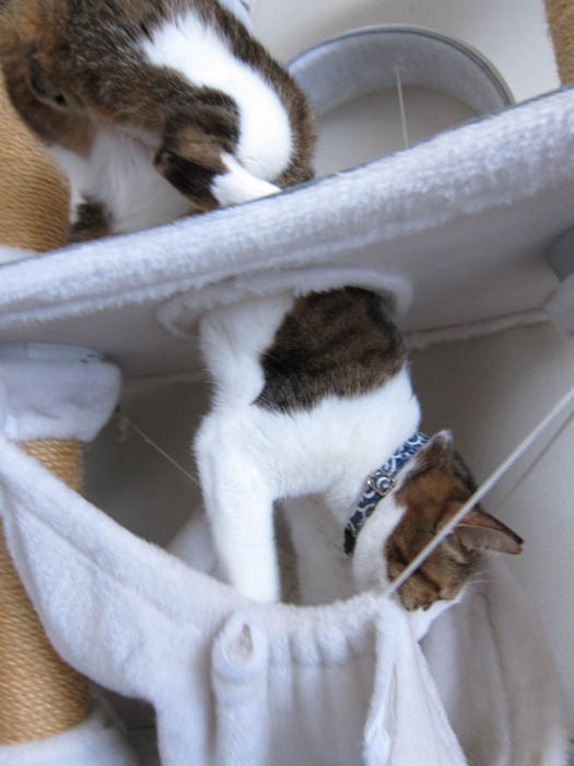 2010年 2/17(水) 550日目のぴっち♀とぽっけ♂ ~猫にミニマム~新規写真追加。嬉しい時のスゴイぴっち♀のしっぽ。逆さ降りをするぽっけ♂。ちっちゃくなった2匹……