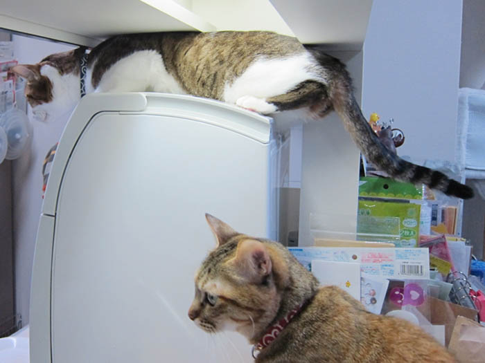 最近、食洗機の上というルートを覚えてしまい、