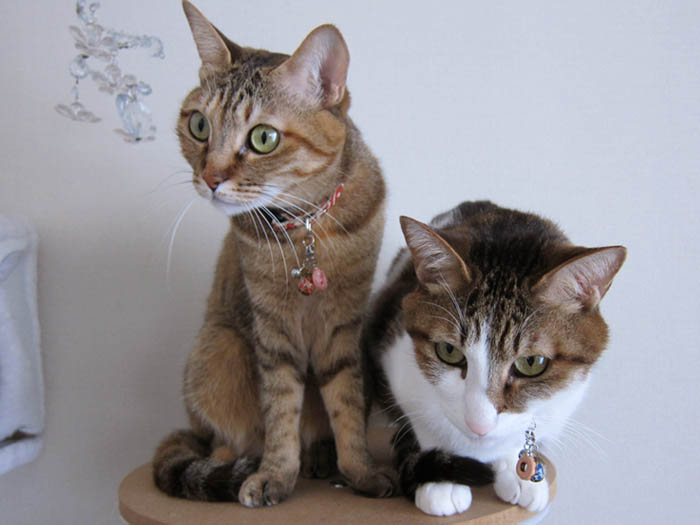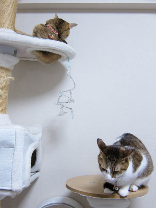 2匹が猫タワーの【元・丸】に集合していました。
