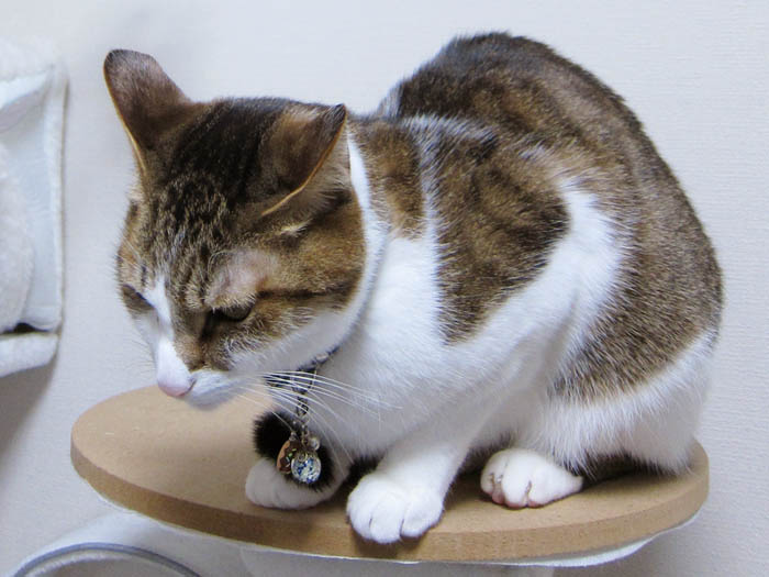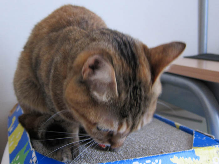 すぐ横にある爪とぎの上に降りて、