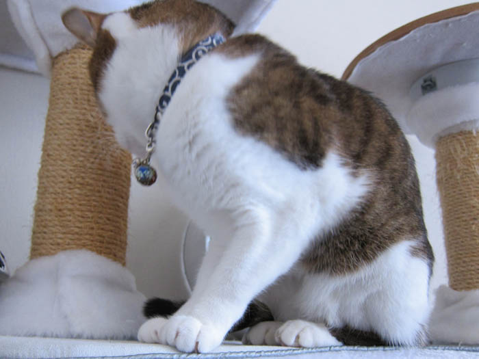に捕まりそうになったぴっち♀がいつものように猫タワーへとダッシュして逃げると、